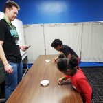 Each child was given a different colored wrist band when they checked-in to show which group they would be in for the night. The groups then rotated to various stations together throughout the night. Four stations featured different games – like Valentine’s Day Bingo, a relay to build the highest stack of heart candies, balloon volley, or a “cake walk” (it was really a “candy walk” since all of the prizes were candy). There was also a craft station where they made their own little pompom friends.